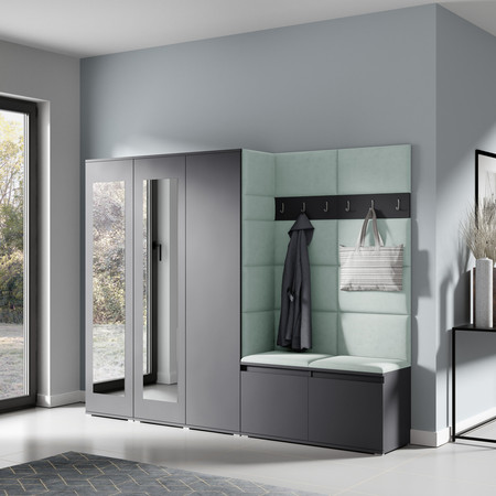 Předsíňová stěna AMI 15 - se zrcadlem Mátová Grafit